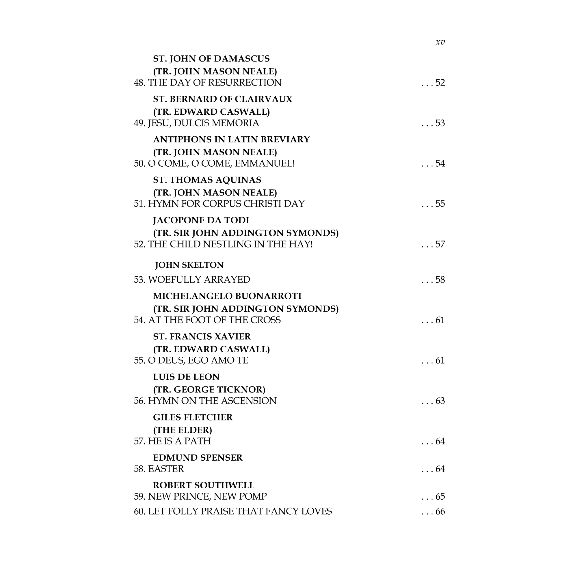 Features the works of 102 poets, including translated pieces from Italian, Latin, and Spanish.