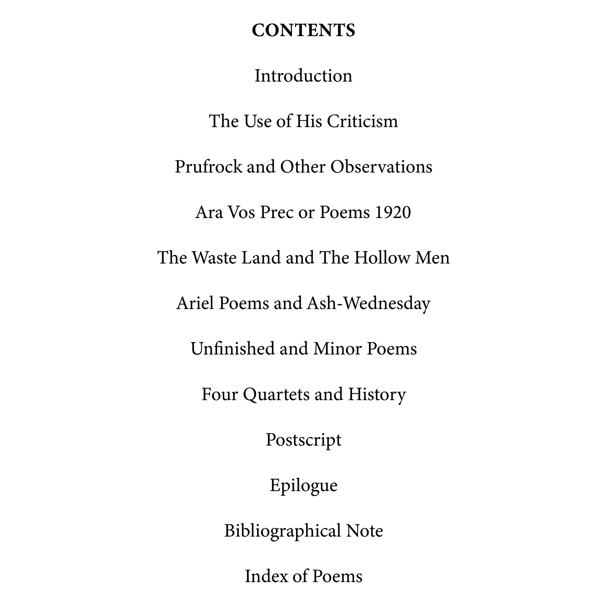 Covers The Waste Land, The Hollow Men, Four Quartets, Prufrock and Other Observations, and more