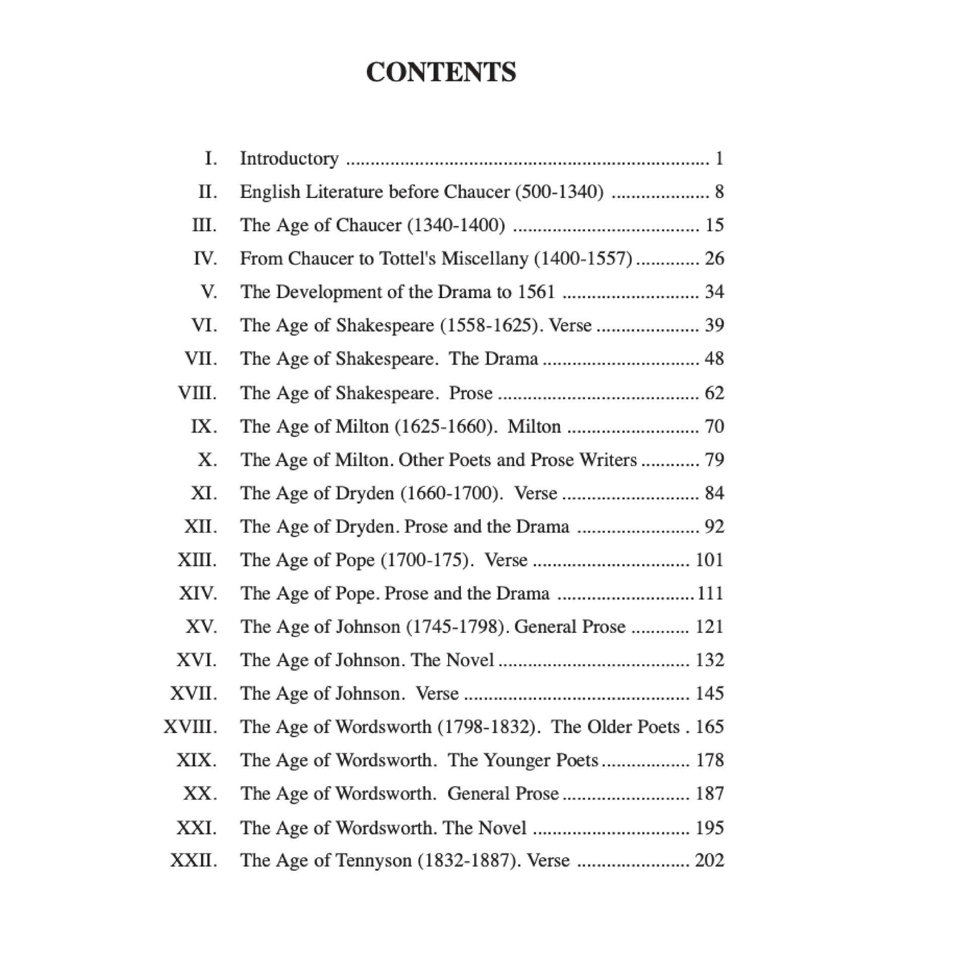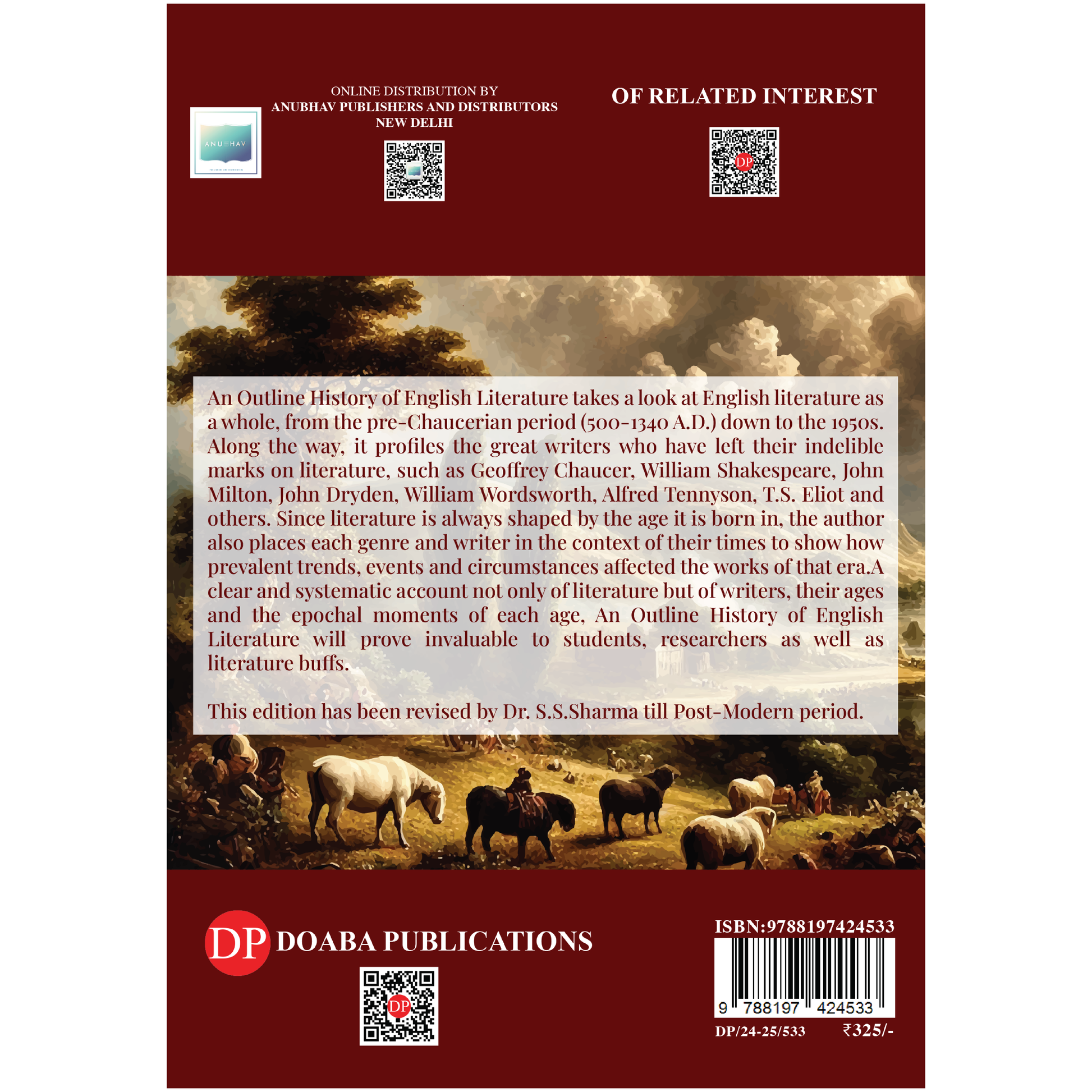 "An Outline History of English Literature" takes a look at English literature as a whole, from the pre-Chaucerian period (500–1340 A.D.) down to the 1950s. Along the way, it profiles the great writers who have left their indelible marks on literature, such as Geoffrey Chaucer, William Shakespeare, John Milton, John Dryden, William Wordsworth, Alfred Tennyson, T.S. Eliot, and others. Since literature is always shaped by the age it is born in, the author also places each genre and writer in the context of their times to show how prevalent trends, events, and circumstances affected the works of that era. A clear and systematic account not only of literature but of writers, their ages, and the epochal moments of each age, "An Outline History of English Literature" will prove invaluable to students, researchers, as well as literature buffs. This edition has been revised by Dr. S. S. Sharma till the Post-Modern period.