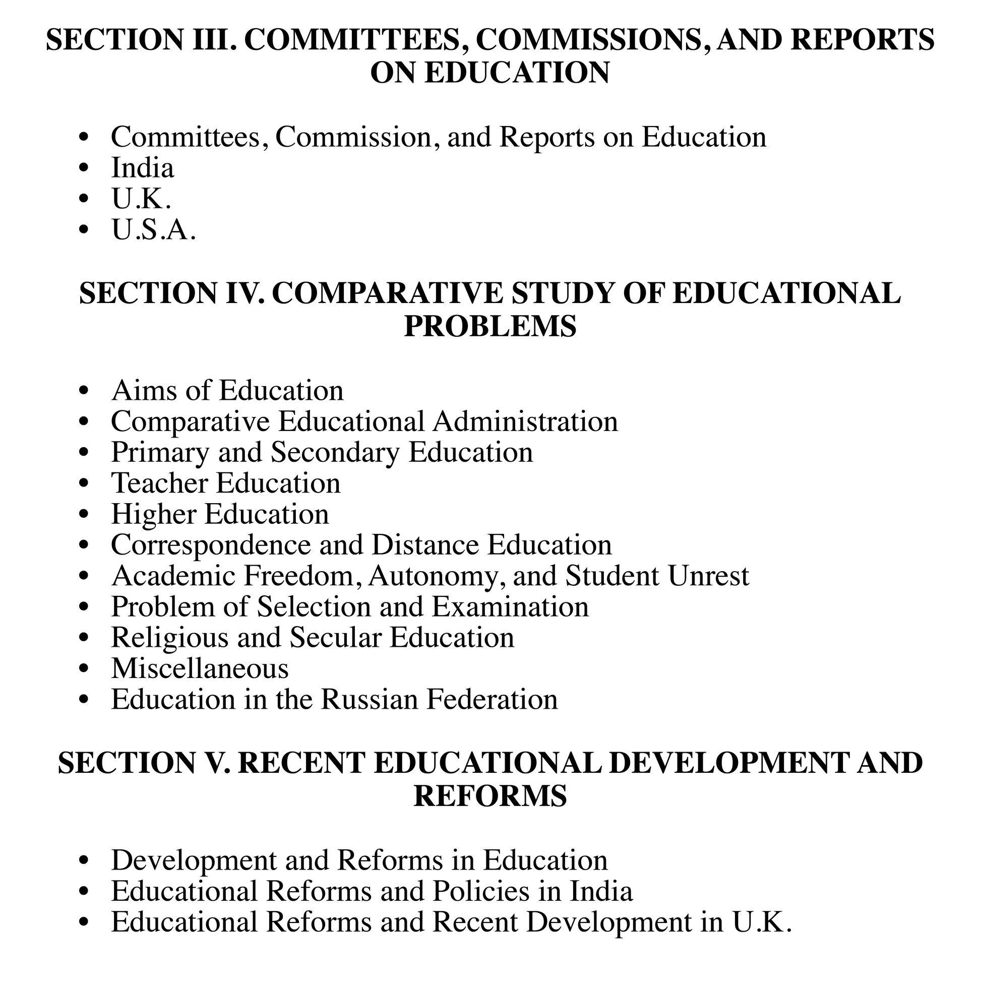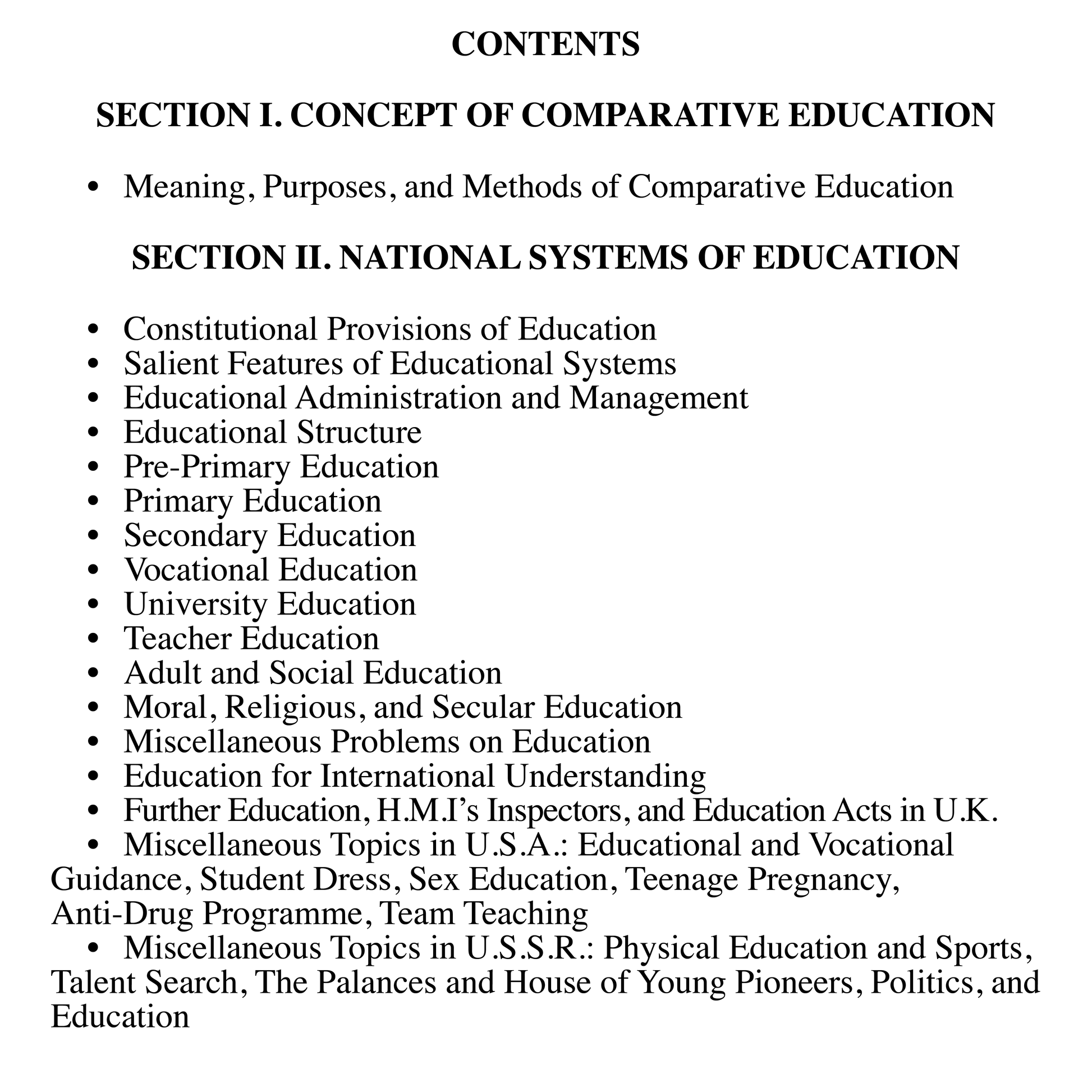 ✔ National Education Systems – In-depth analysis of constitutional provisions, administration, structure, teacher training, and vocational education in different countries.