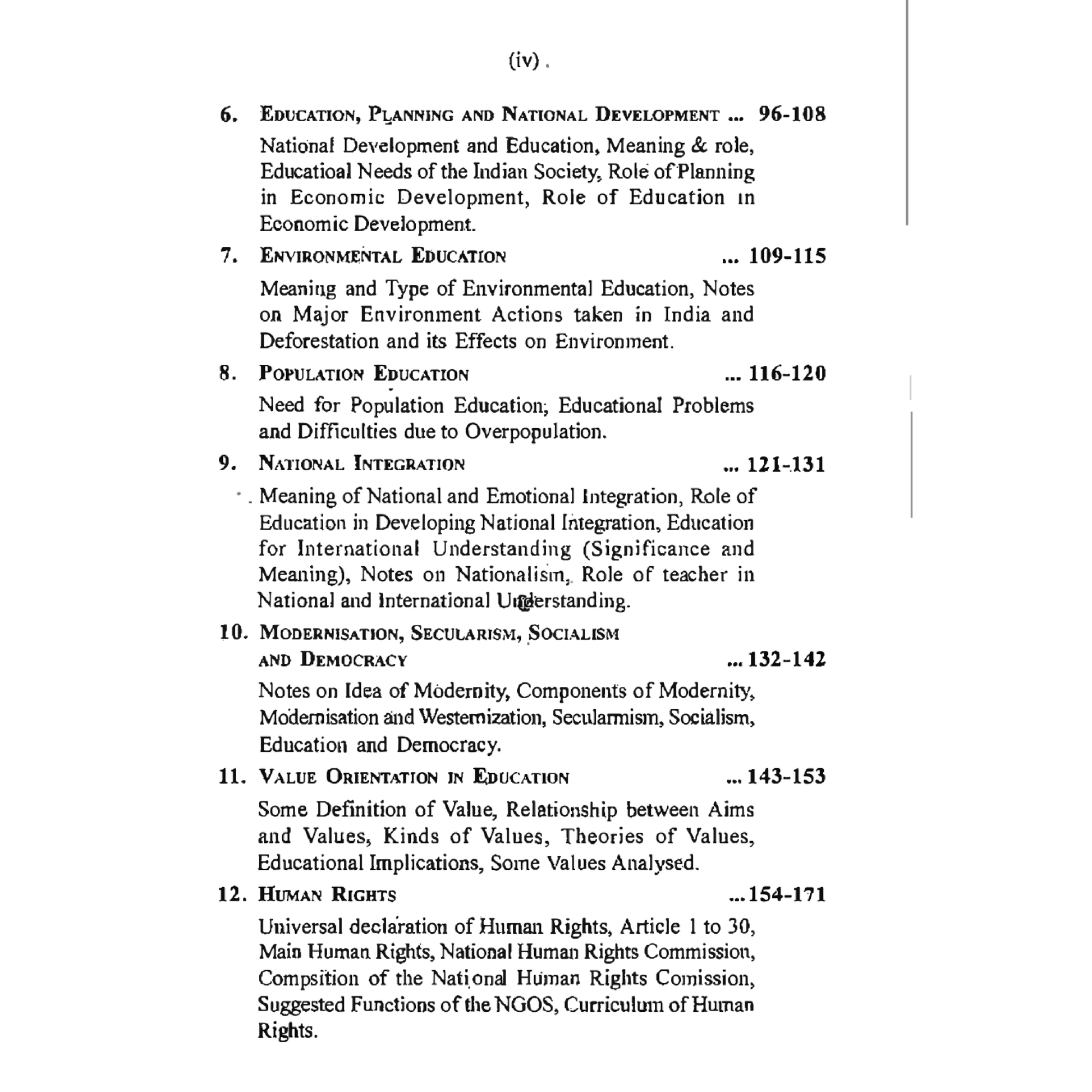 National Integration & Democracy Ð The role of education in promoting unity, secularism, and modern values.