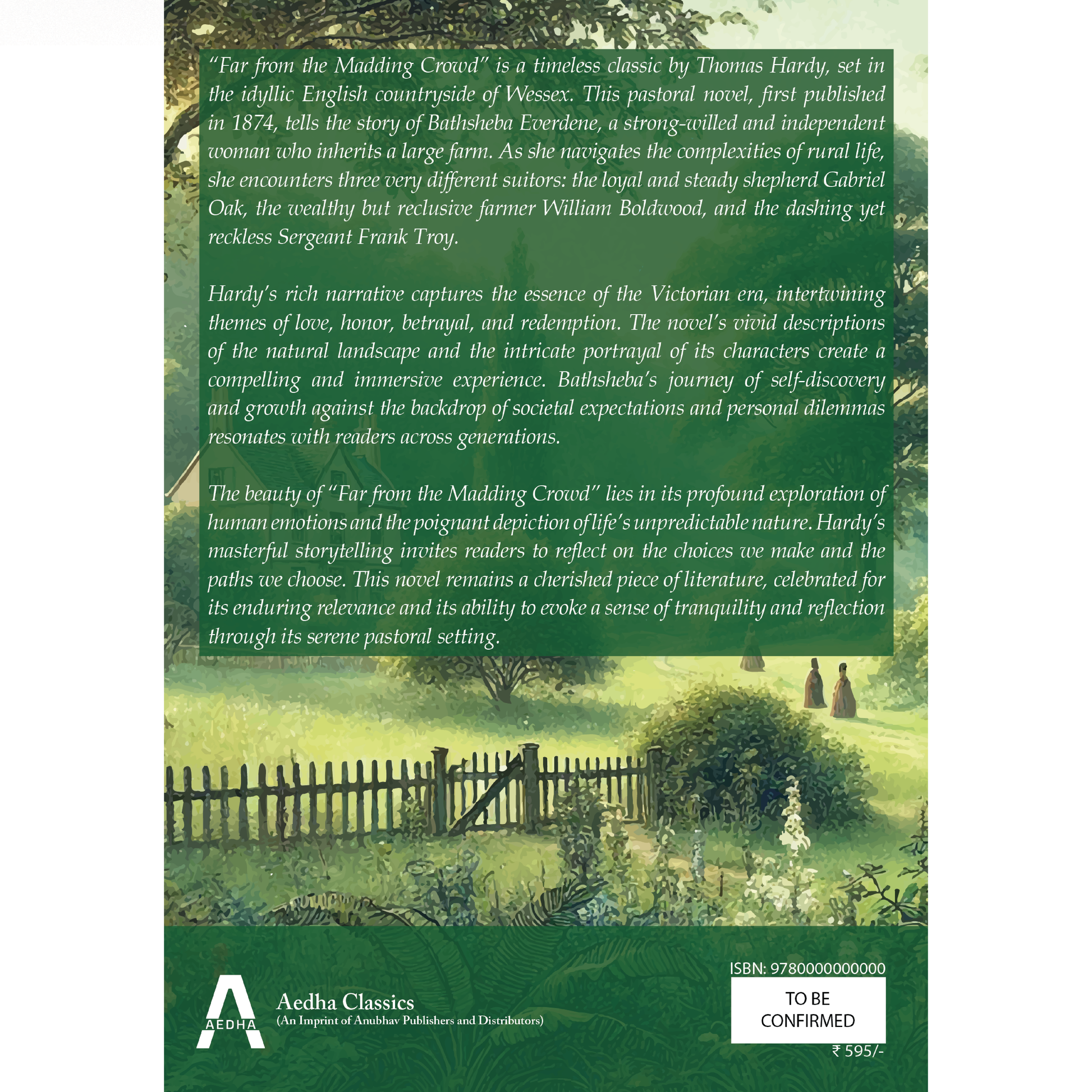 A timeless Victorian romance by Thomas Hardy, Far from the Madding Crowd blends emotional depth with pastoral beauty. Set in Wessex, this richly layered narrative explores love, independence, betrayal, and redemption through the story of Bathsheba Everdene and her three suitors. Celebrated for its vivid rural imagery and complex characters, this Aedha Classics edition is an ideal choice for classic literature enthusiasts and students alike. Printed in India.