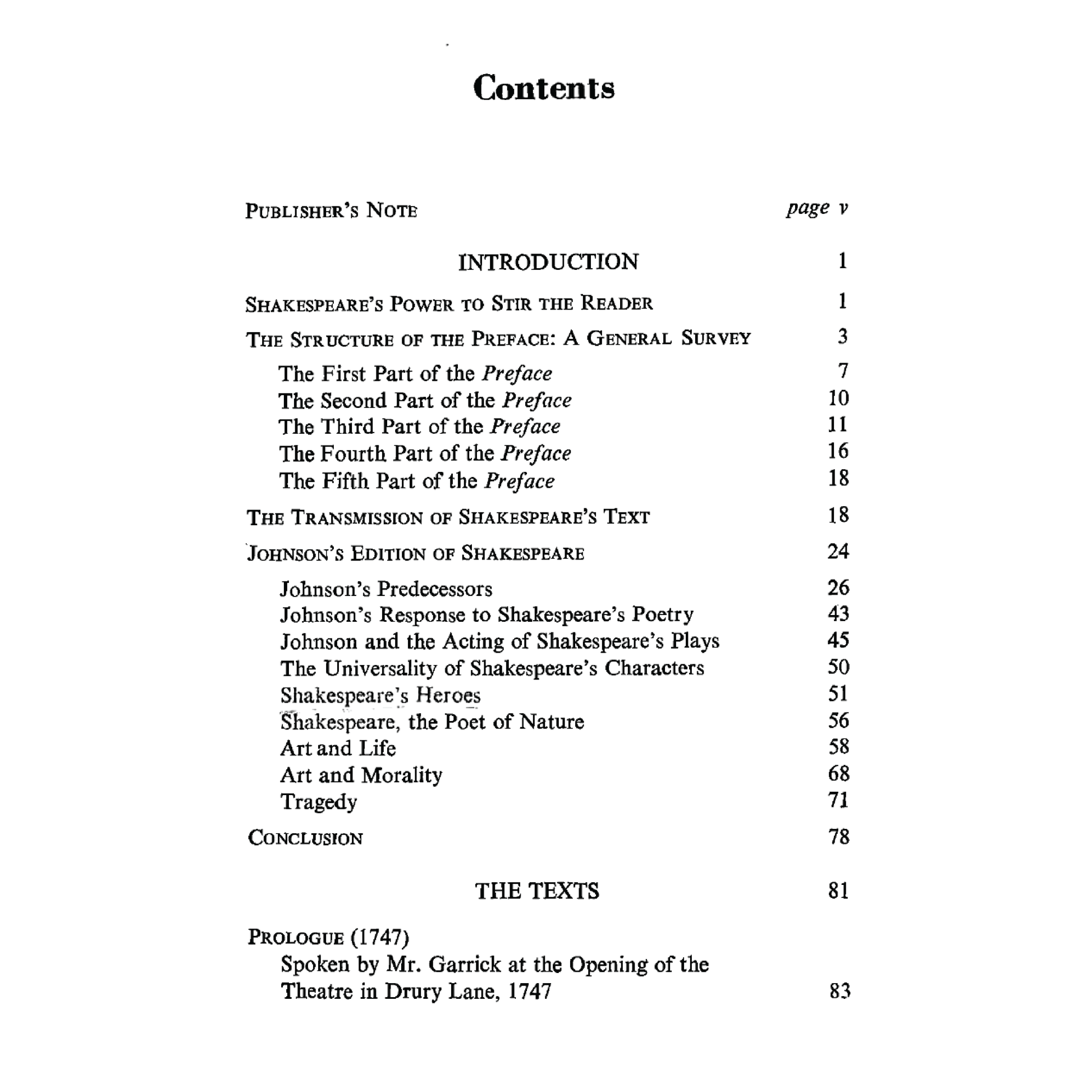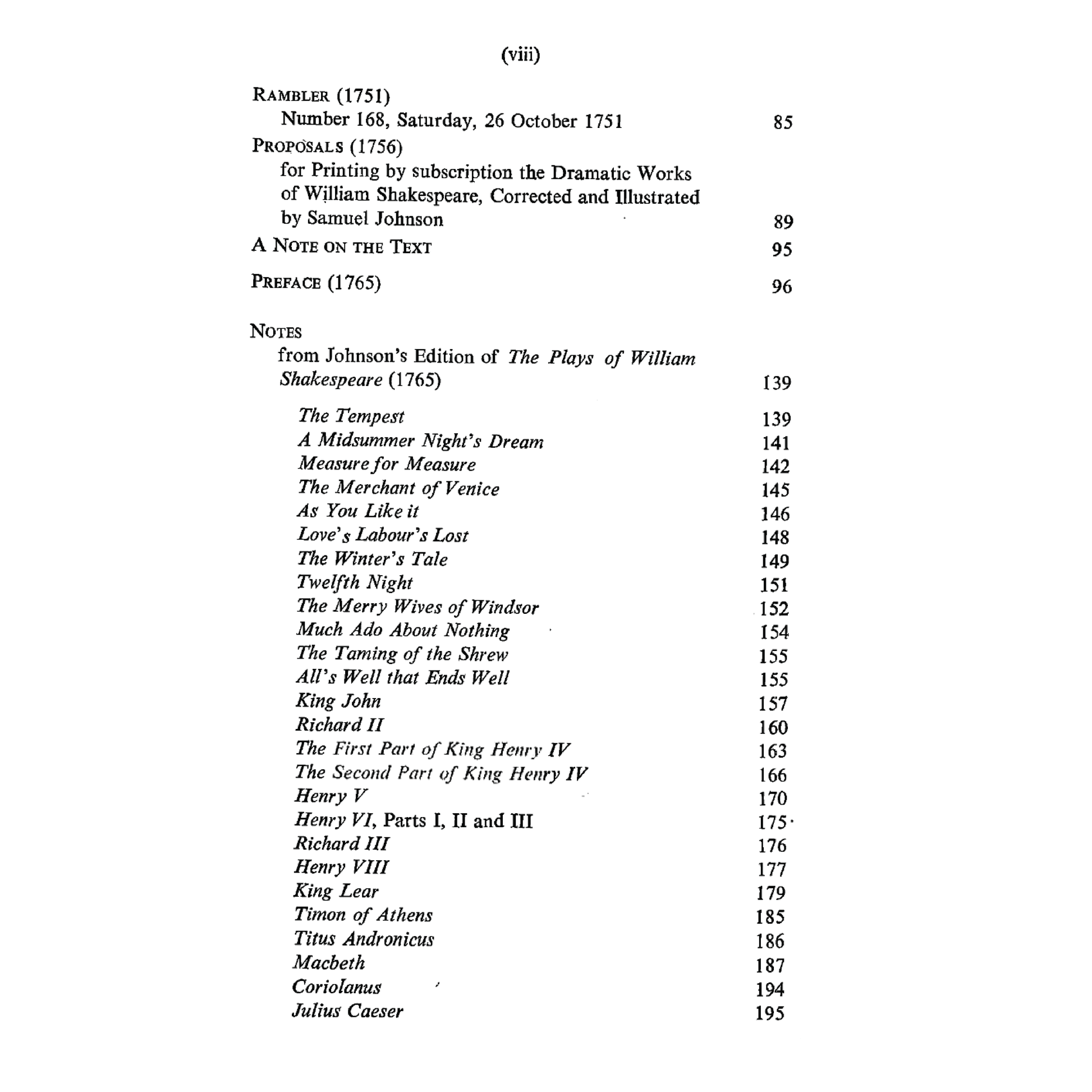 Includes JohnsonÕs Prologue, Rambler Essay, and Proposal for publishing Shakespeare