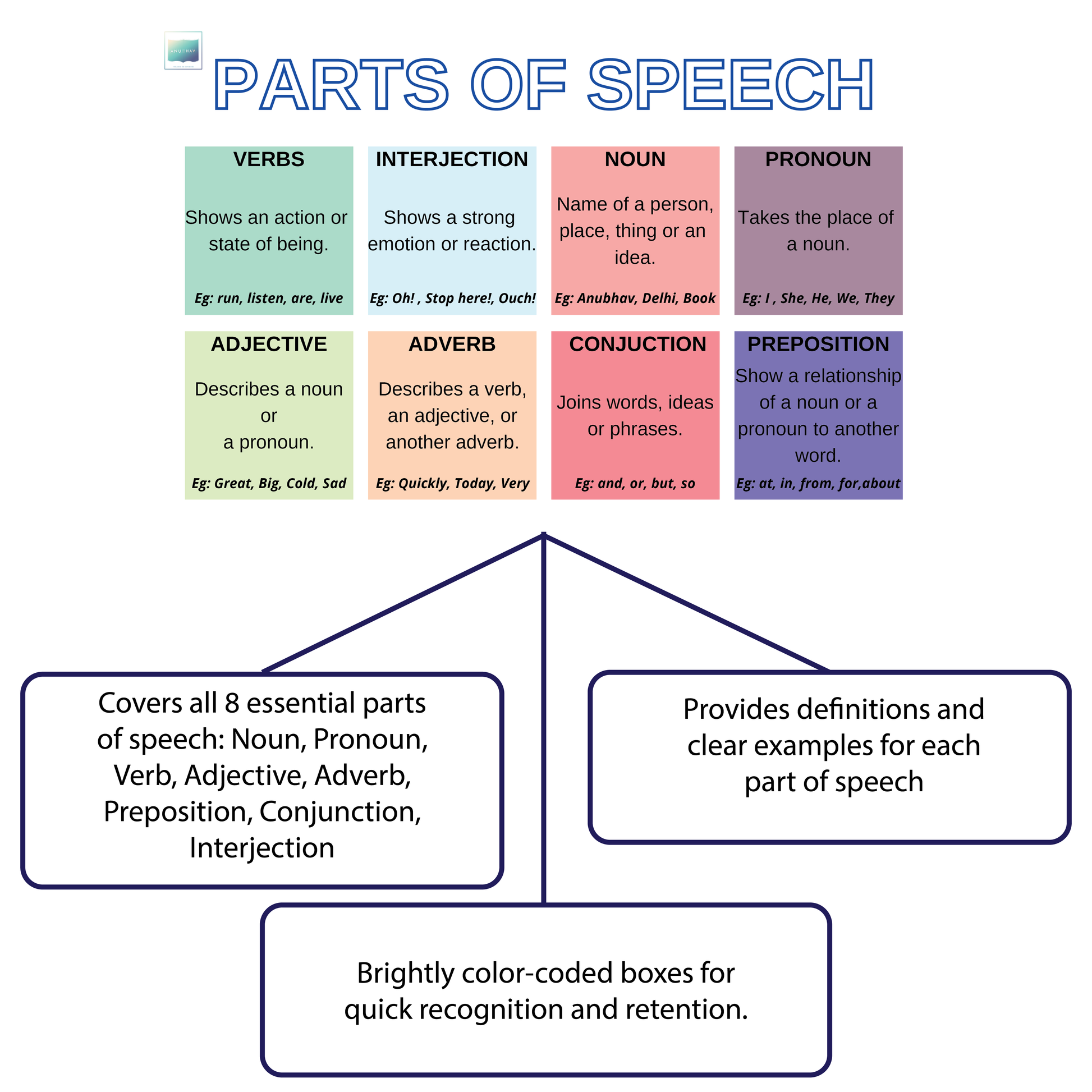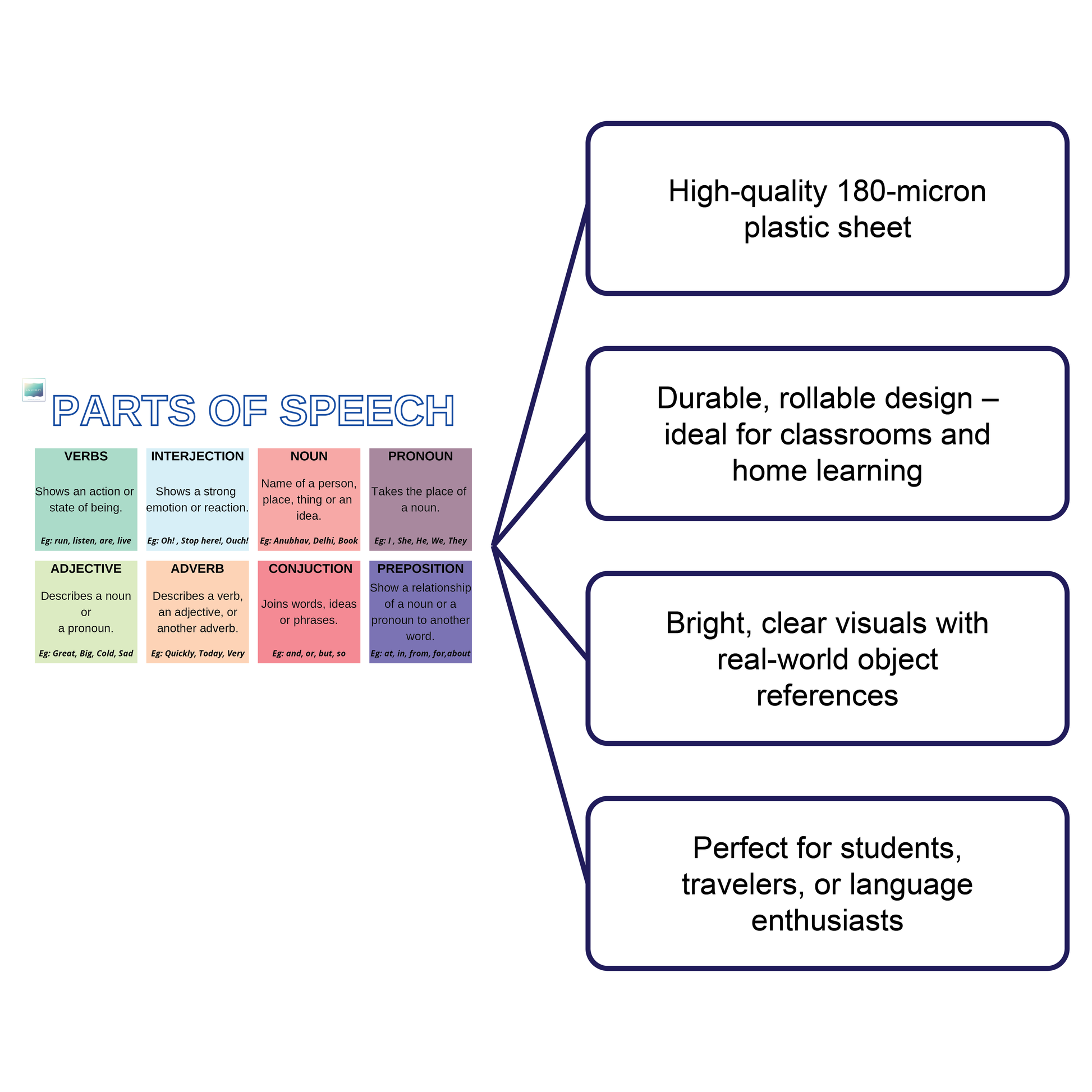 This Parts of Speech poster offers a comprehensive yet easy-to-grasp overview of grammar’s building blocks. Each section is beautifully presented with definitions and examples that make learning grammar interactive and effective. A great aid for exam preparation, daily grammar practice, or classroom decor.