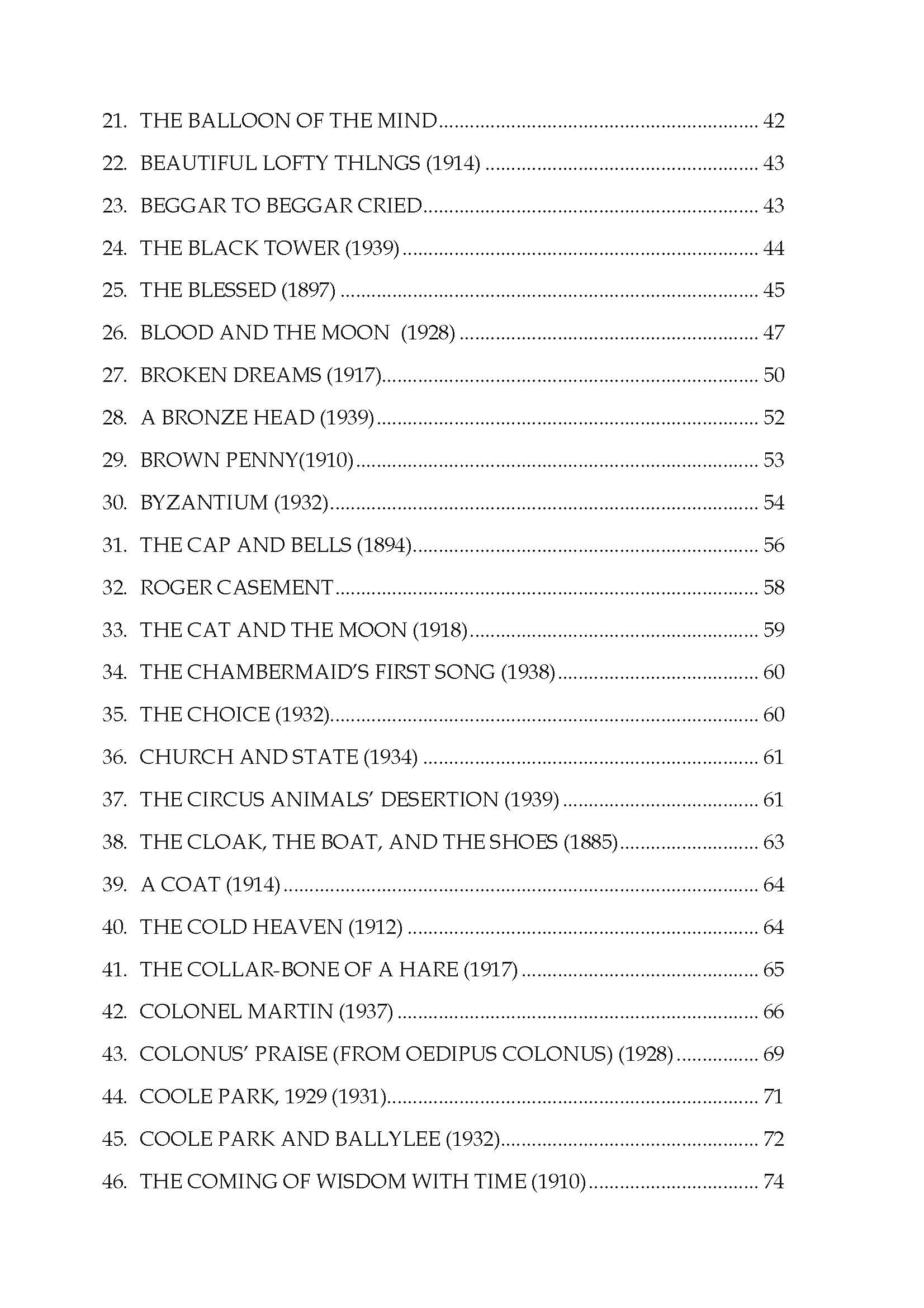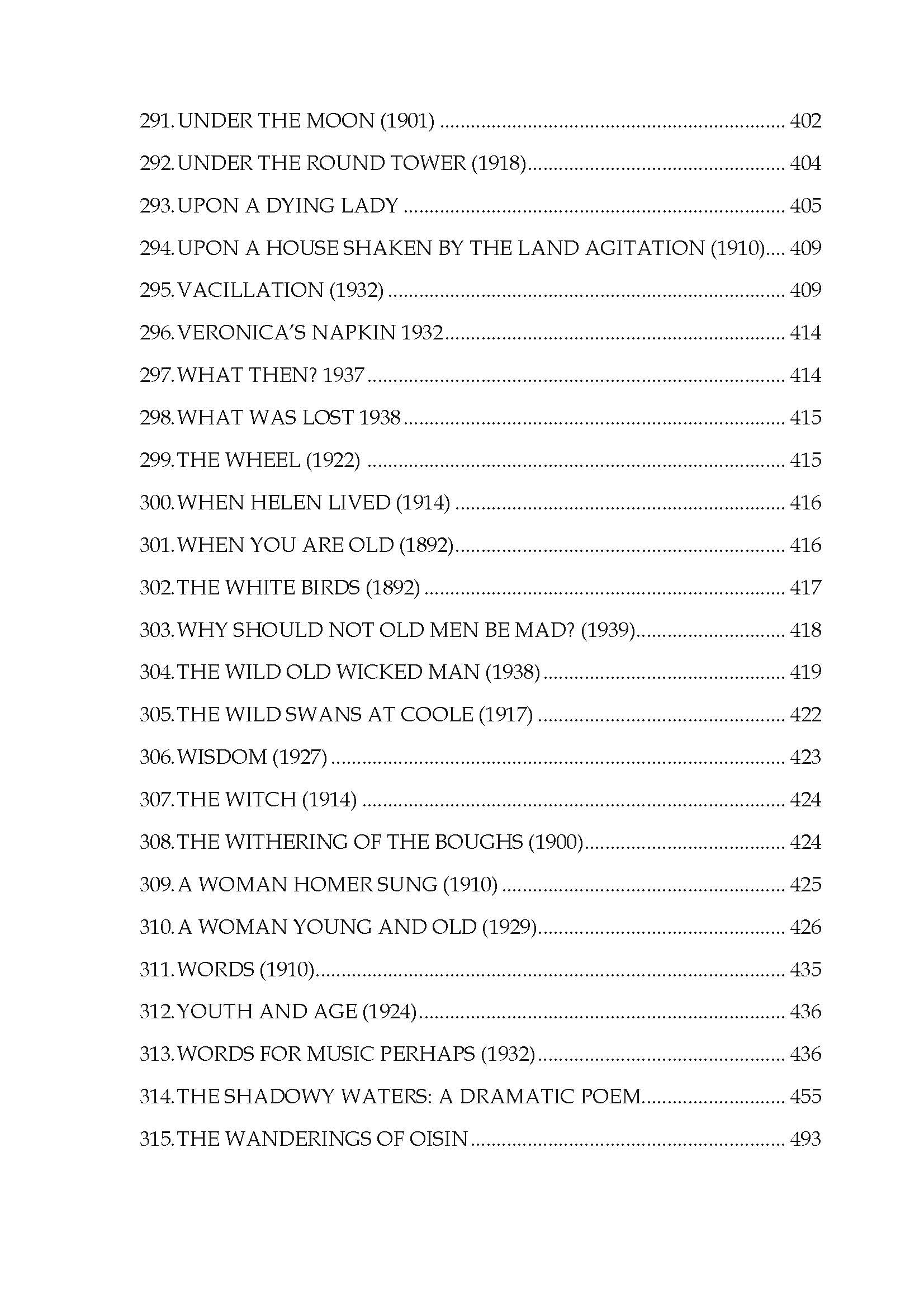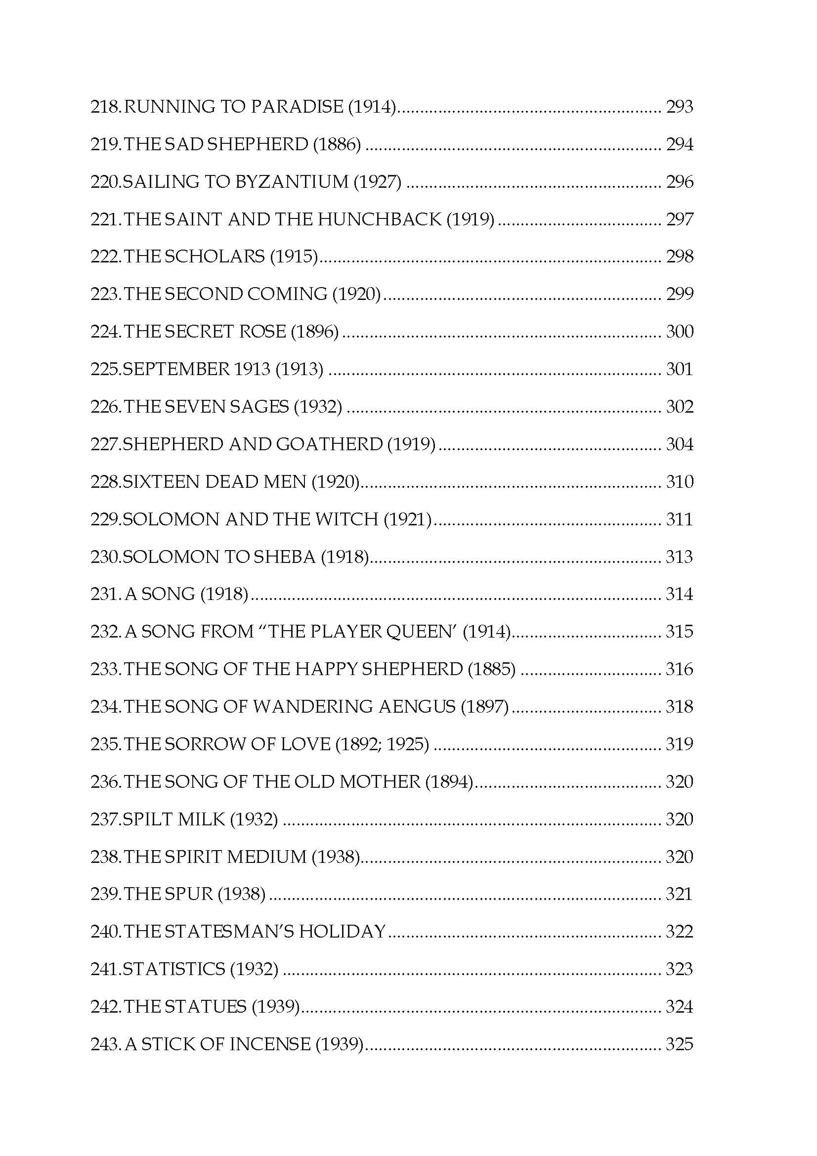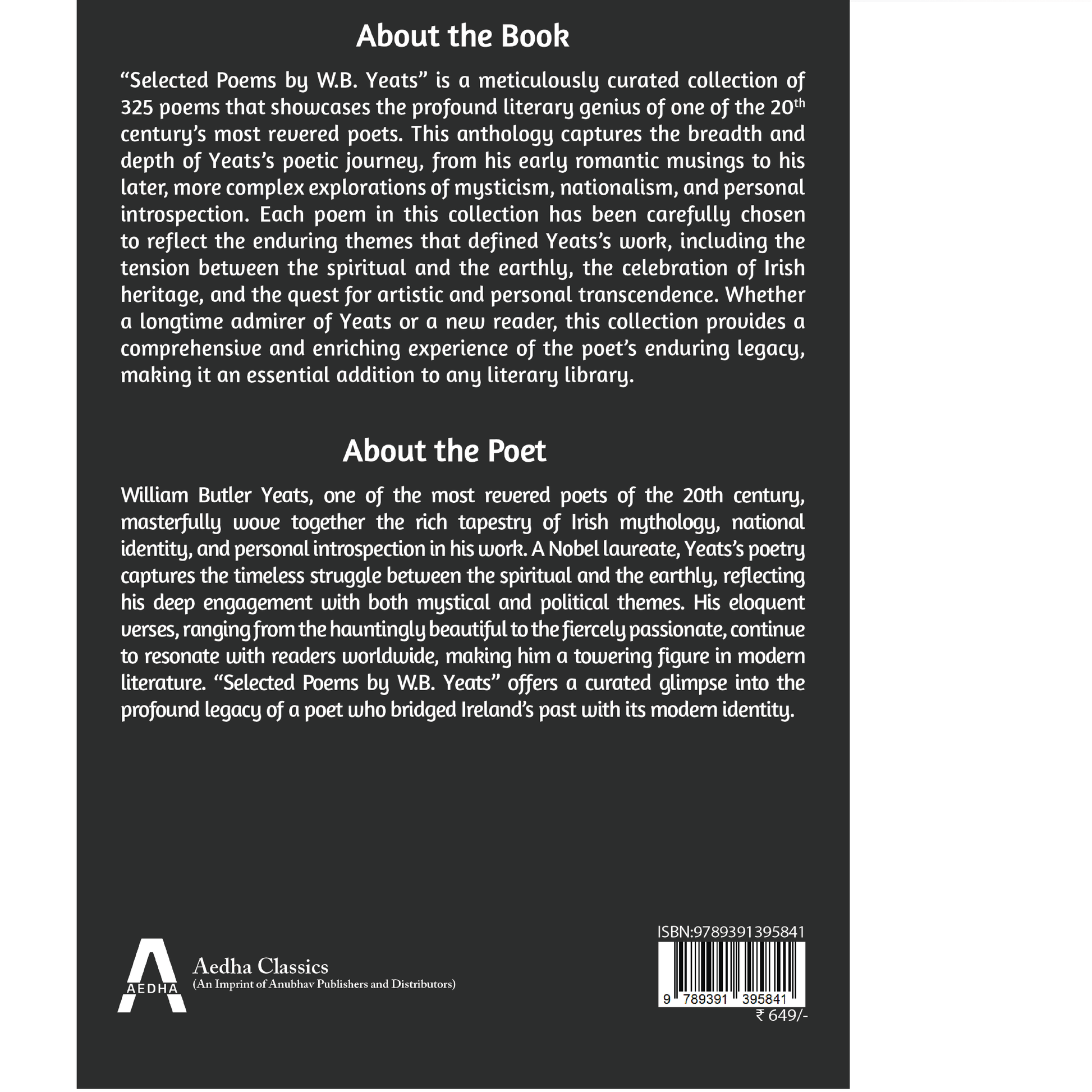 "Selected Poems by W.B. Yeats" is a meticulously curated collection of 325 poems that showcases the profound literary genius of one of the 20th century's most revered poets. This anthology captures the breadth and depth of Yeats's poetic journey, from his early romantic musings to his later, more complex explorations of mysticism, nationalism, and personal introspection. Each poem in this collection has been carefully chosen to reflect the enduring themes that defined Yeats's work, including the tension between the spiritual and the earthly, the celebration of Irish heritage, and the quest for artistic and personal transcendence. Whether a longtime admirer of Yeats or a new reader, this collection provides a comprehensive and enriching experience of the poet's enduring legacy, making it an essential addition to any literary library.