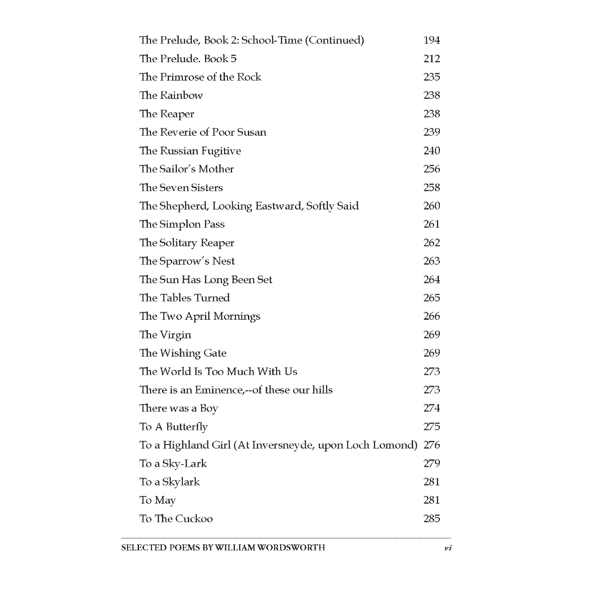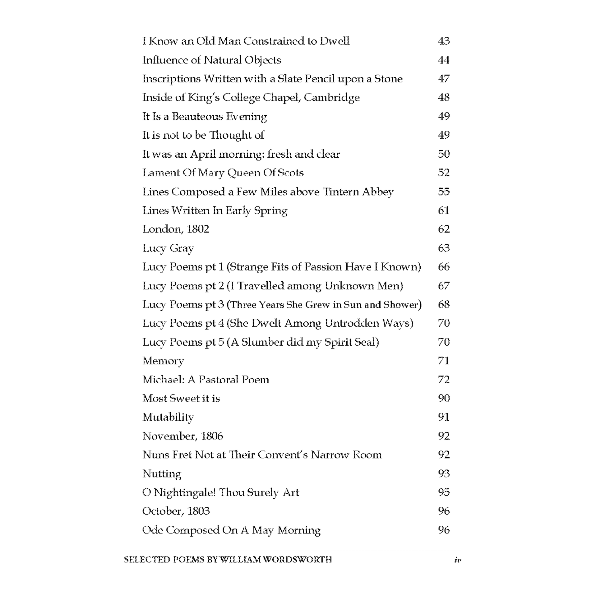 This collection features some of his most celebrated works, including Lines Composed a Few Miles Above Tintern Abbey, Ode: Intimations of Immortality, and The Daffodils, which exemplify his love for nature and its connection to the human soul. Poems like The Solitary Reaper, The World Is Too Much with Us, and London, 1802 reflect his deep social and philosophical concerns, while Lucy Gray and the Lucy Poems explore themes of love, loss, and mortality with lyrical simplicity.