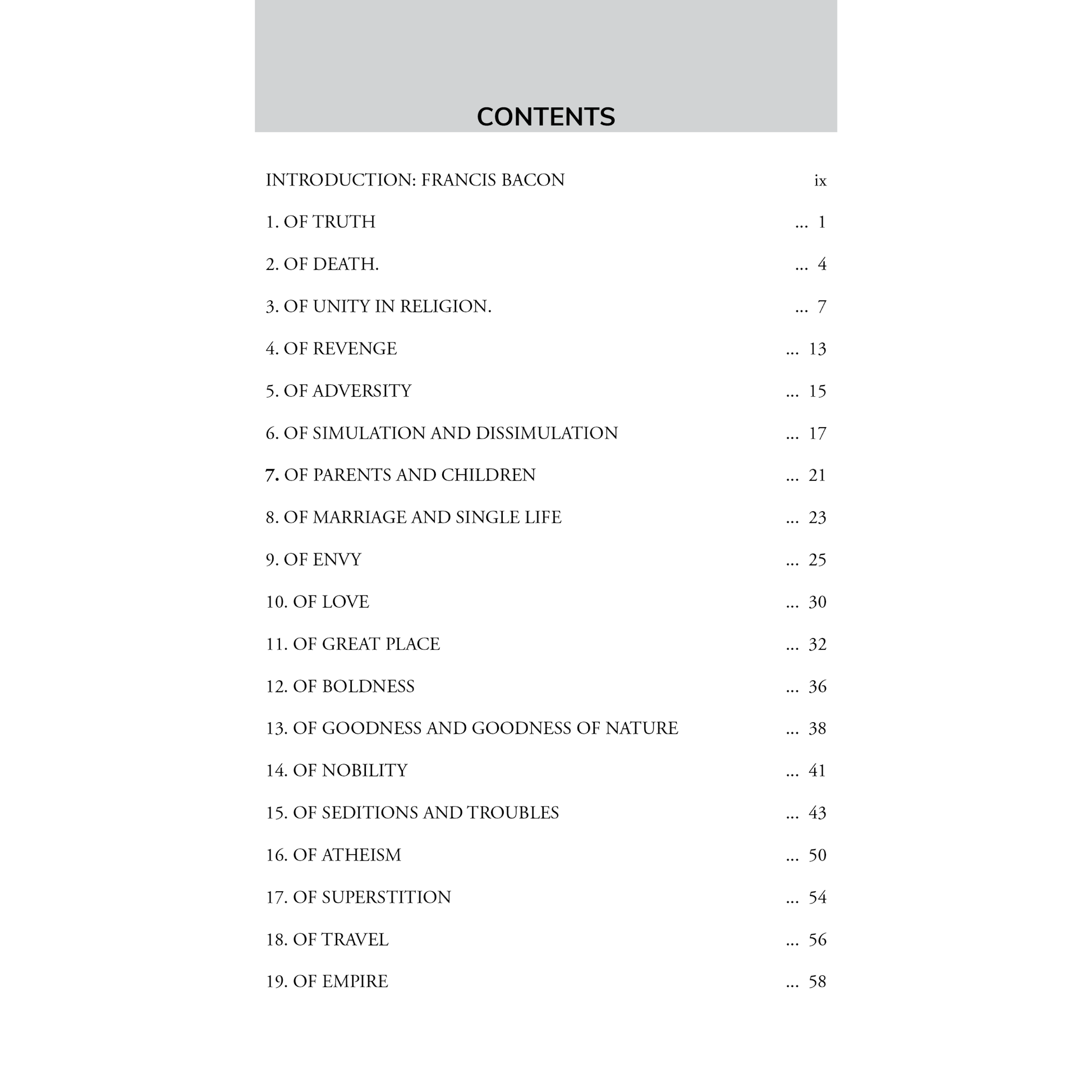The Complete Annotated Essays of Francis Bacon is a definitive edition of one of the most influential works of English literature and philosophy. With clear introductions and critical notes by Spiers and Montagu, this book makes Bacon’s timeless insights on truth, death, friendship, ambition, honor, and human nature accessible to modern readers. Ideal for academic study or personal enrichment, this edition remains a cornerstone of intellectual and literary history.