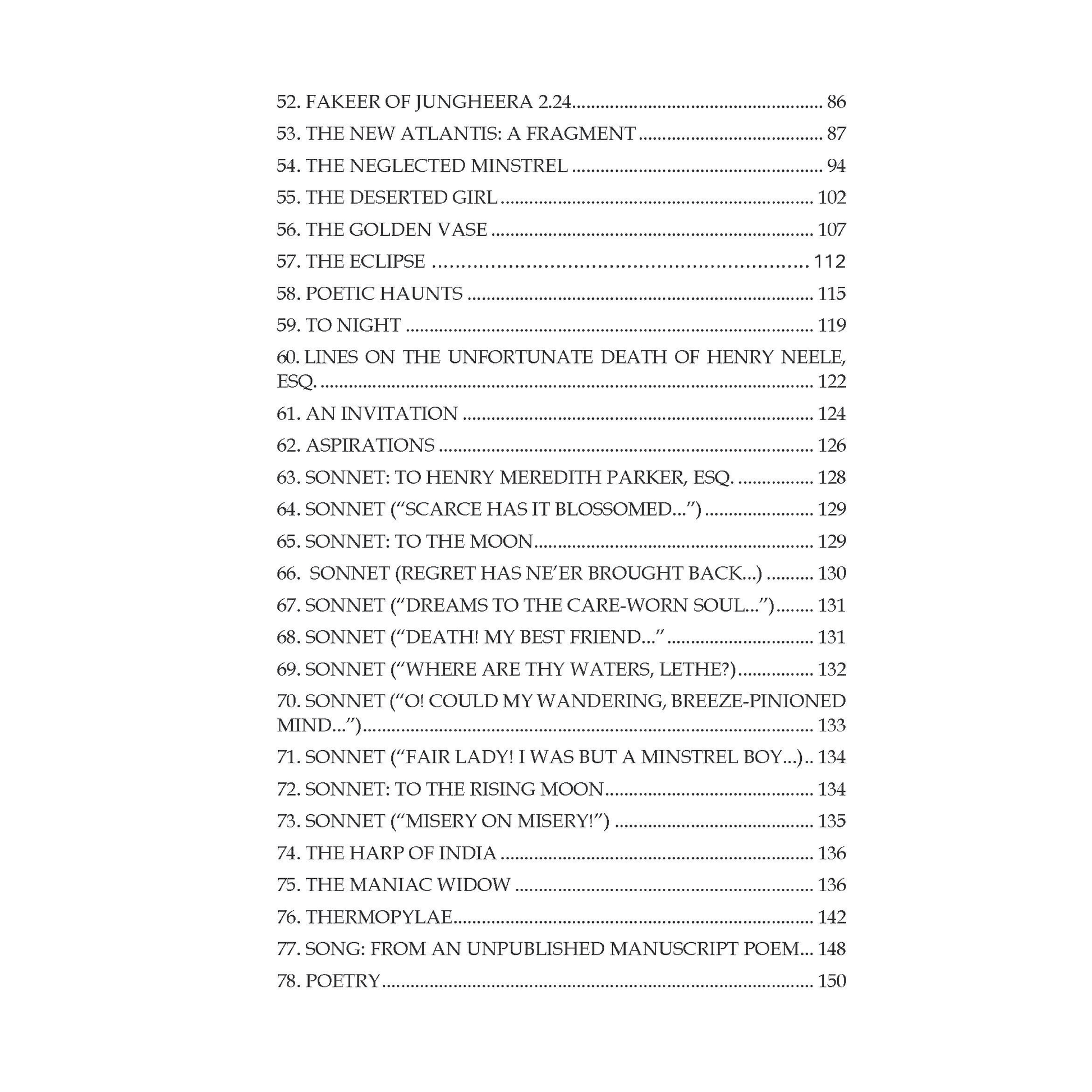 This comprehensive collection includes some of Derozio's most celebrated works, such as "To India - My Native Land," a poignant ode reflecting his deep sense of patriotism and yearning for India's glory. The book also features his epic poem "Fakir of Jungheera," a narrative that masterfully intertwines romance, heroism, and tragedy against the backdrop of Indian culture and society.