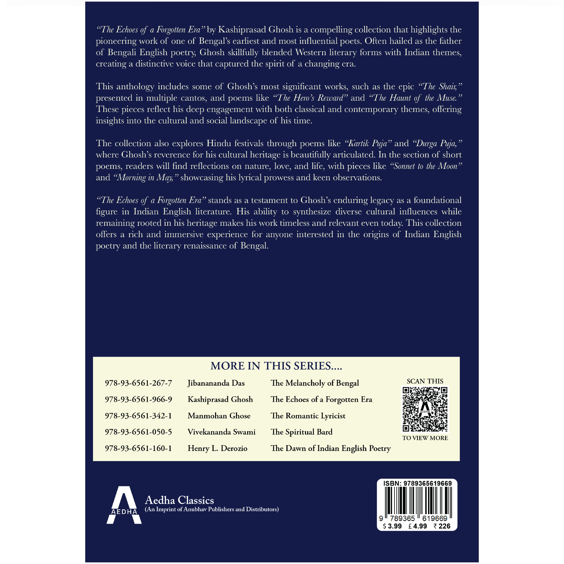 "The Echoes of a Forgotten Era" by Kashiprasad Ghosh is a compelling collection that highlights the pioneering work of one of Bengal's earliest and most influential poets. Often hailed as the father of Bengali English poetry, Ghosh skillfully blended Western literary forms with Indian themes, creating a distinctive voice that captured the spirit of a changing era.