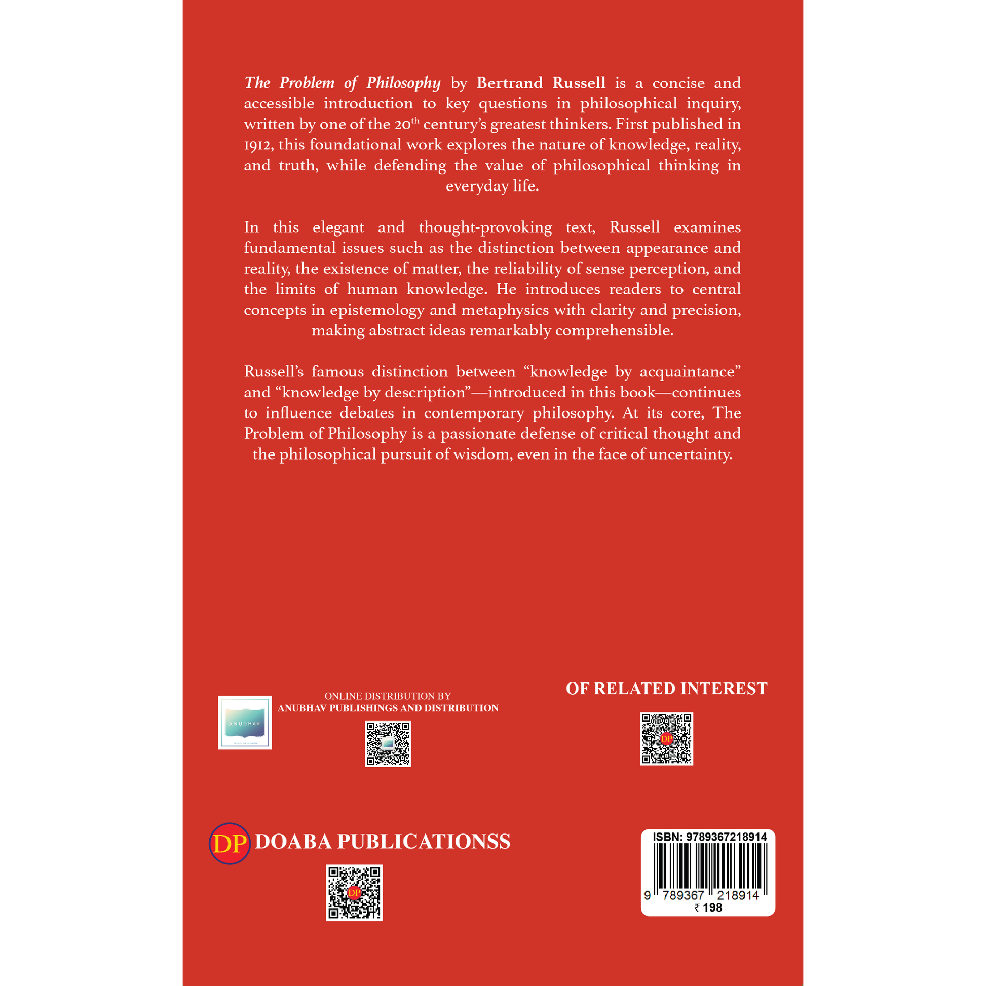 The Problem of Philosophy is Bertrand Russell’s timeless attempt to make philosophy accessible to the general reader. He introduces complex topics such as empiricism, rationalism, the value of knowledge, and the quest for certainty with elegance and precision.