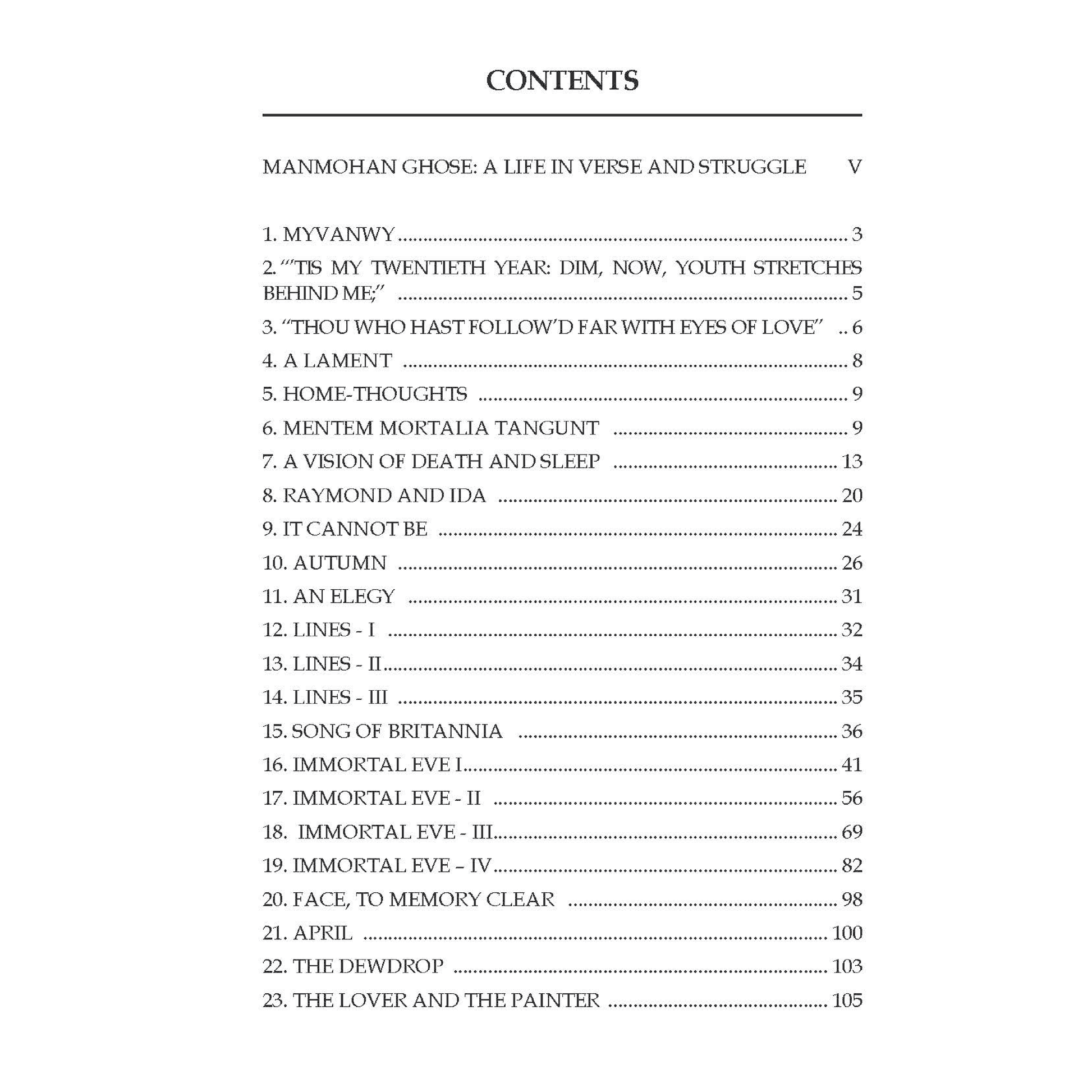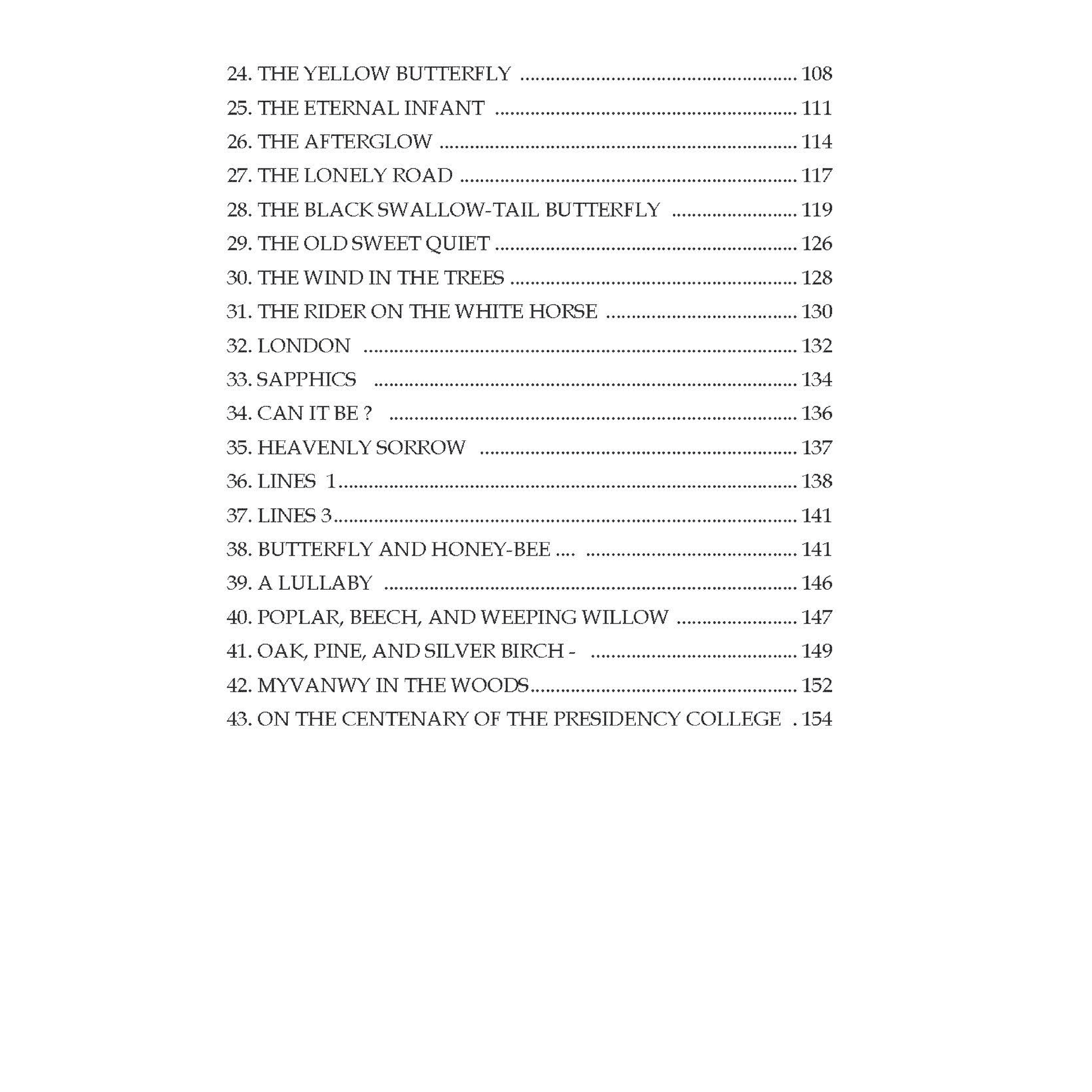This anthology showcases a wide range of Ghose’s lyrical poetry, reflecting his deep emotional landscapes, his meditations on nature, and his explorations of love and loss. The collection includes poignant pieces such as "A Lament," "Home-Thoughts," and "A Vision of Death and Sleep," which highlight Ghose's ability to convey profound emotions with elegant simplicity.