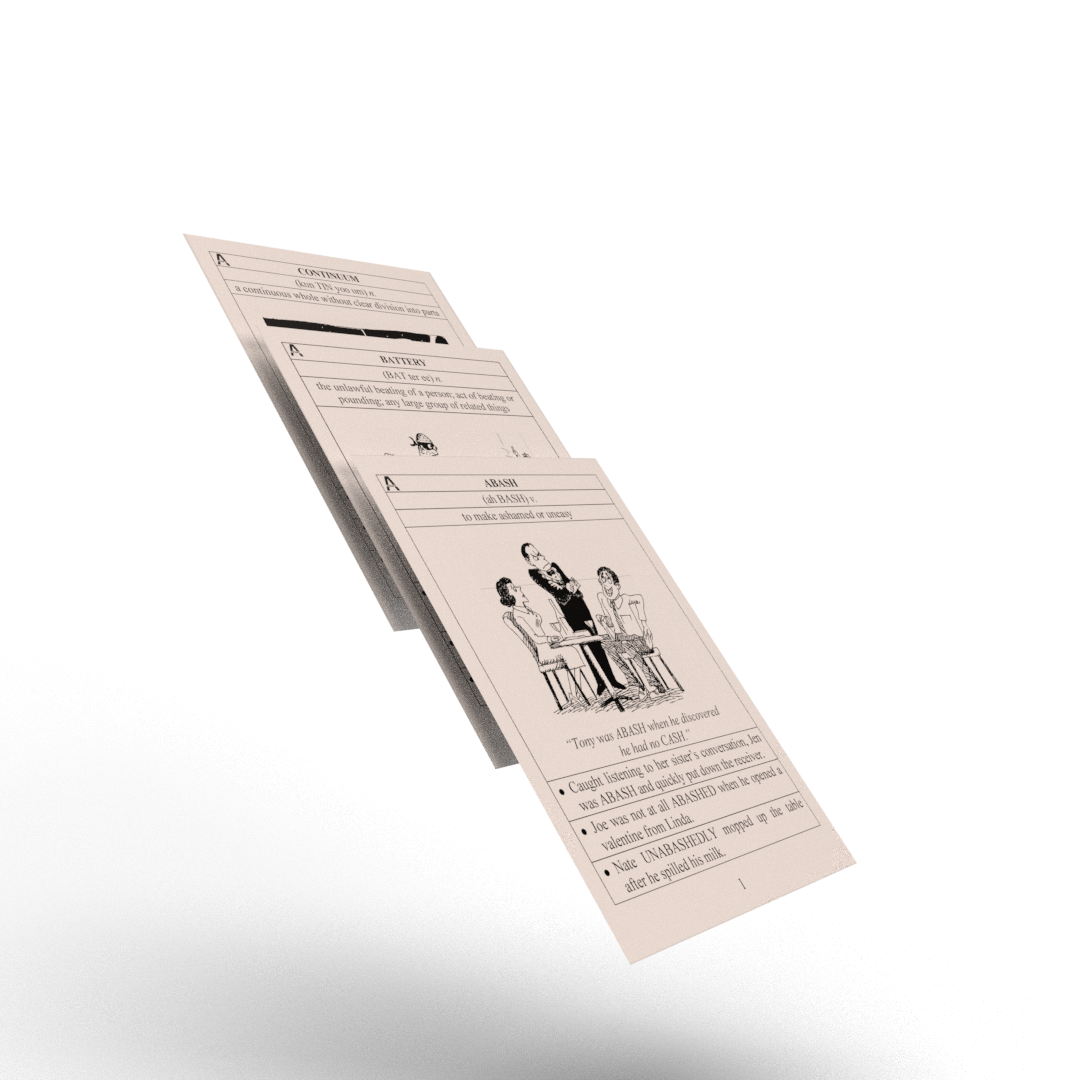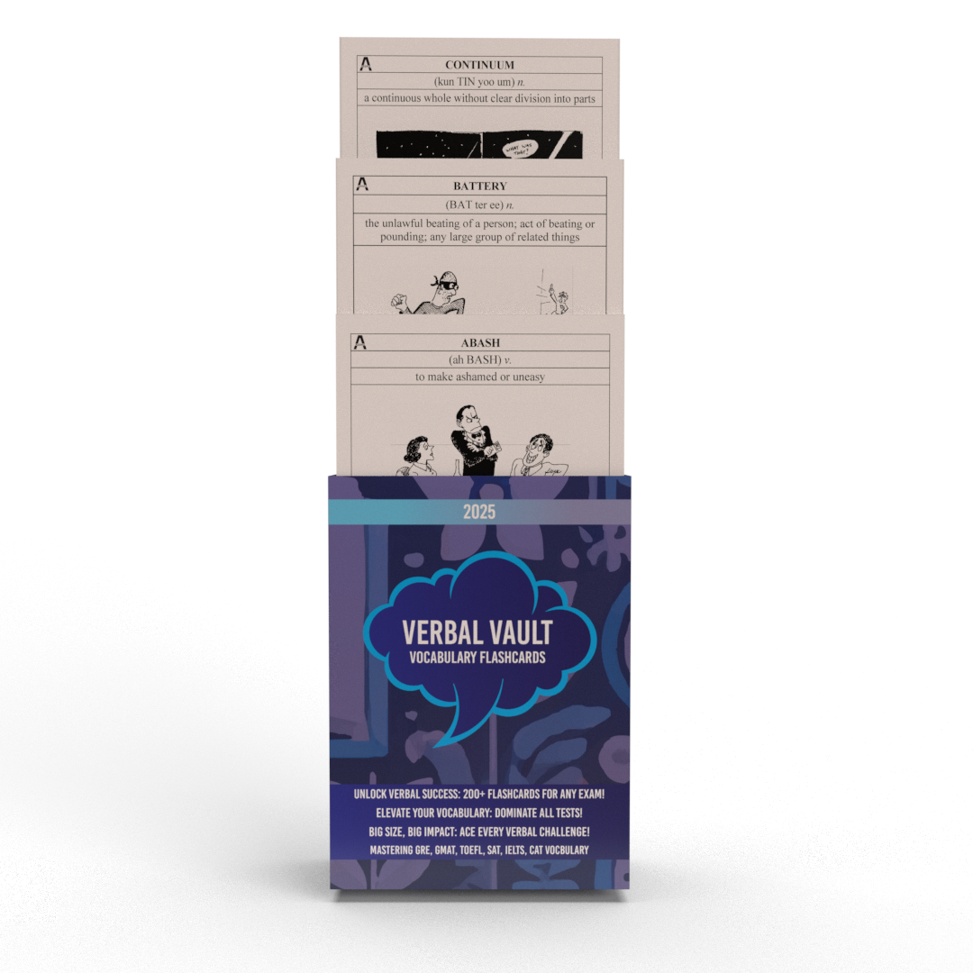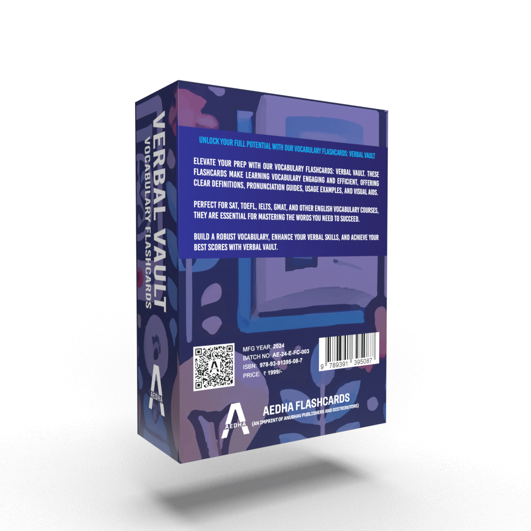 Unlock your full potential with our "Verbal Vault: Vocabulary Flashcards". Elevate your prep with these engaging and efficient flashcards, designed to make learning vocabulary clear and enjoyable. Each flashcard includes definitions, pronunciation guides, usage examples, and visual aids to enhance understanding. Perfect for SAT, TOEFL, IELTS, GMAT, and other English vocabulary courses, these flashcards are essential for mastering the words you need to succeed. Build a robust vocabulary, enhance your verbal skills, and achieve your best scores with "Verbal Vault". This set includes over 280 flashcards, ensuring comprehensive coverage of essential vocabulary. Whether you are a student, a professional, or an English language enthusiast, these flashcards are an invaluable tool for improving your language skills. Manufactured by Aedha Flashcards, a trusted name in educational resources, this set guarantees quality and effectiveness.